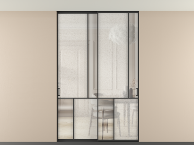 Во всех алюминиевых перегородках, независимо от типа установки, используется компланарный раздвижной механизм, благодаря которому декоративная крышка и полотно находятся в одной плоскости.
